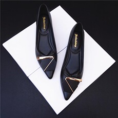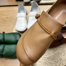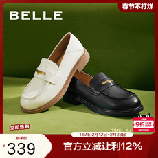 百田森超软小羊皮深口单鞋2025新款女士乐福鞋圆头麻花扣平底单鞋