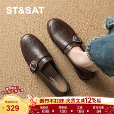 沙驰女鞋英伦风皮带扣乐福鞋女款2026春季新款平底单鞋深口小皮鞋