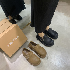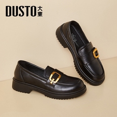 大东软皮平底乐福鞋女2026新款秋冬黑色粗跟单鞋英伦风宽头小皮鞋
