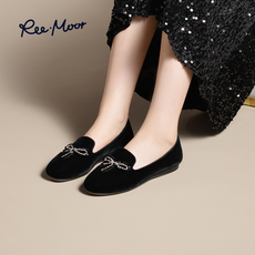 REEMOOR睿慕2025新款秋冬圆头乐福鞋浅口单鞋一脚蹬平底豆豆鞋女