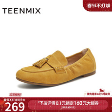天美意复古平底乐福鞋豆豆鞋女软底休闲单鞋2025秋季新款BL901CA5