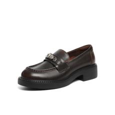 C.BANNER千百度撤柜牛皮处理女鞋平底防滑圆头乐福鞋时尚休闲单鞋