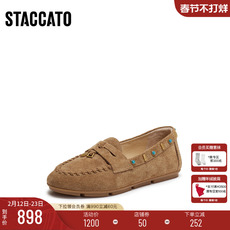 沙驰女鞋舒适休闲平底小皮鞋秋冬季新款免系带乐福鞋深口大头单鞋