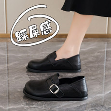 复古两穿小皮鞋女2026新款春季黑色通勤乐福鞋平底一脚蹬博肯单鞋