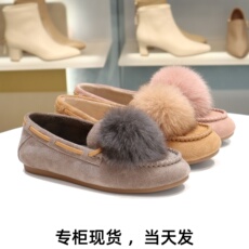 欧洲站2024冬季新款毛毛鞋女加绒貂毛豆豆鞋懒人鞋女平底真皮单鞋