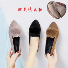 磨砂皮单鞋女平底豆豆鞋2025新款秋冬真皮外穿毛毛鞋大码加绒棉鞋