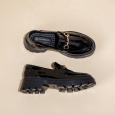 百丽复古乐福鞋女鞋新款鞋子女英伦风黑色小皮平底单鞋Z3B1DCA3