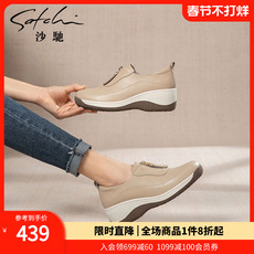 断码特价厚底真皮休闲单鞋女2026春季新款坡跟中年妈妈鞋软底女鞋