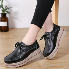 春秋款真皮摇摇鞋休闲舒适厚底单鞋中年妈妈鞋软底护士鞋坡跟女鞋