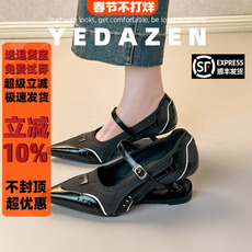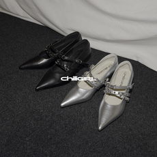 ALEXSARA 2026早春新款 尖头坡跟复古擦色高跟电镀金属跟浅口单鞋