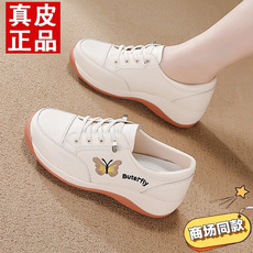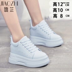 真皮内增高小白鞋女8cm厚底小码31 32春秋坡跟休闲单鞋松糕板鞋女