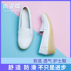 厚底护士鞋女软底坡跟增高单鞋老北京透气不累脚美容师工作小白鞋