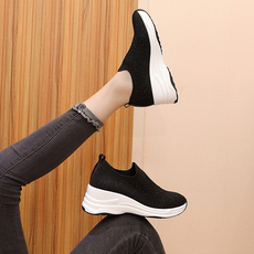 凡得特价2022新款女透气8cm松糕休闲坡跟运动女厚底单鞋网面轻便