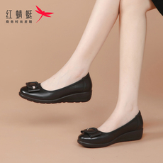 妈妈鞋新款真皮软底低跟舒适中年女鞋坡跟深口单鞋平底中老年皮鞋