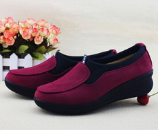 2025新款老北京布鞋休闲时尚绒面圆头厚底坡跟工作鞋妈妈鞋女单鞋