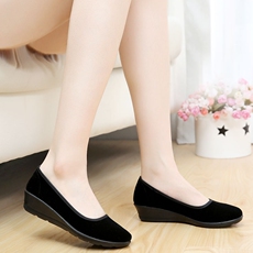 老北京布鞋女鞋坡跟单鞋酒店礼仪工作装鞋软底妈妈鞋舞蹈鞋黑布鞋