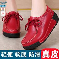 真皮厚底单鞋女护士鞋黑色工作鞋软底防滑坡跟宽头妈妈舒适春秋款