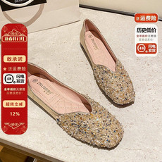 方头单鞋女平底浅口百搭2026新款夏豆豆鞋水钻瓢鞋大码女鞋41到43