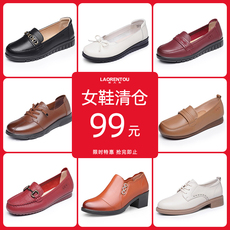 老人头妈妈鞋透气真皮休闲浅口女单鞋断码特价清仓软底软皮休闲鞋