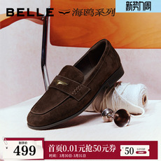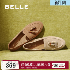 百丽羊皮一脚蹬乐福鞋女鞋2026新款薄底深口豆豆单鞋子B2998AA6