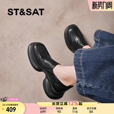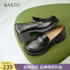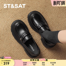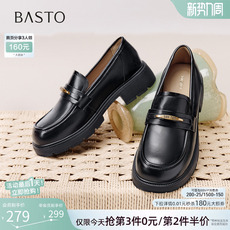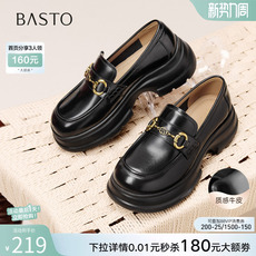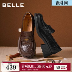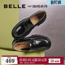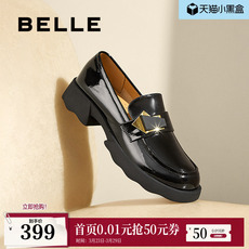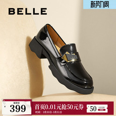 百丽时光旅人厚底乐福鞋新款黑色孟克小皮鞋深口单鞋子E1F1DAM6预