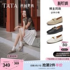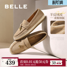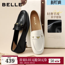 百丽羊皮英伦风乐福小皮鞋女新款软平底豆豆深口单鞋子E3C1DCA5预