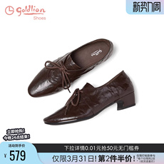 金利来深口单鞋女粗跟2026春季新款女鞋棕色系带百搭通勤中跟皮鞋