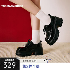Toomanyshoes26年春新款暗夜哥特厚底乐福鞋通勤舒适漆面深口单鞋