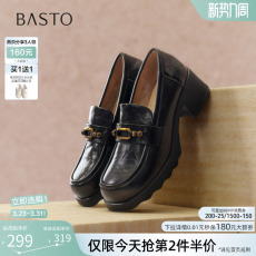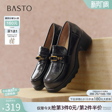 百思图春季商场新款粗高跟乐福鞋小皮鞋深口女单鞋BV071AA5