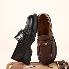 百丽复古羊皮乐福鞋女26春季新款粗高跟通勤深口单鞋子B2988AA6