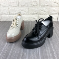 fed黑色小皮鞋春季新款女鞋墨岩踏痕乐福鞋厚底深口单鞋女款ZC076