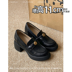 内增高11CM!小个子圆头防水台乐福鞋2026秋冬新款小众深口单鞋女