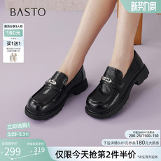 百思图26春商场新款英伦厚底粗跟乐福鞋小皮鞋女深口单鞋BV111AA6