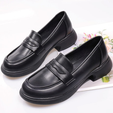 百搭圆头厚底职业黑色小皮鞋软底软皮一脚蹬深口单鞋女通勤乐福鞋