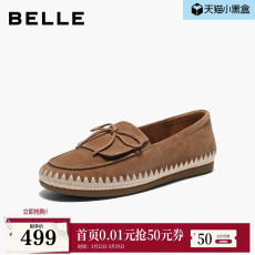 百丽羊皮编织渔夫乐福鞋女2026春季新款一脚蹬深口单鞋F2C1DAA6