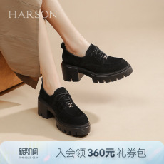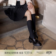 博主推荐百田森厚底乐福鞋女新款黑色百搭小皮鞋真皮深口单鞋