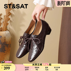 星期六2026新款女鞋粗跟系带羊皮深口单鞋女软底不累脚气质牛津鞋