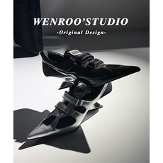 性感尖头魔术贴尖头拳击单鞋女春2026新款银色深口运动坡跟高跟鞋