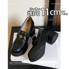 NNMISS·34-39/5cm小个子厚底休闲乐福鞋复古羊猄皮深口懒人单鞋