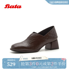 星期六秋季新款高级感一脚蹬深口单鞋女方头粗跟乐福鞋软底通勤鞋