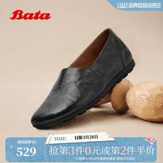 百丽乐福鞋女新款黑色小皮鞋两穿一脚蹬羊皮深口单鞋子E1N1DCA5