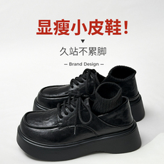 真皮厚底乐福鞋女2026春夏新款休闲圆头系带增高深口单鞋松糕鞋