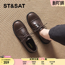 星期六2025新款女鞋系带小皮鞋女乐福鞋尖头中跟简约女深口单鞋