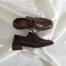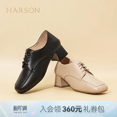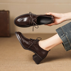 莲花府邸2026春季单鞋方头深口系带牛津鞋通勤百搭牛皮粗跟小皮鞋