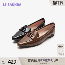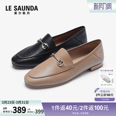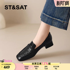 星期六春季新款休闲羊皮方头乐福女鞋百搭金属扣软底通勤深口单鞋