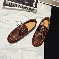 手工厚底真皮女鞋2026秋冬新款平底鞋复古小皮鞋棉麻风深口单鞋