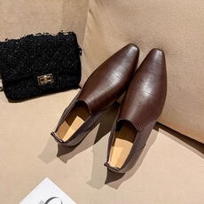 2025年新款复古斜方头编织乐福鞋舒适两穿小皮鞋真皮低跟深口单鞋
