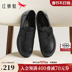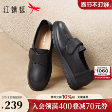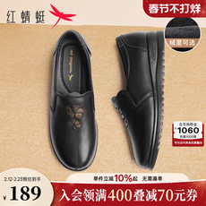 红蜻蜓皮鞋女妈妈款真皮软底中老年人鞋子舒适平底不累脚奶奶单鞋