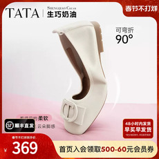 TATA他她生巧奶油裸色平底鞋女软底舒适真皮单鞋女方扣护士鞋百搭