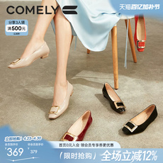 康莉平底单鞋女春季新款方扣真皮气质百搭粗跟舒适通勤女鞋配裙子
